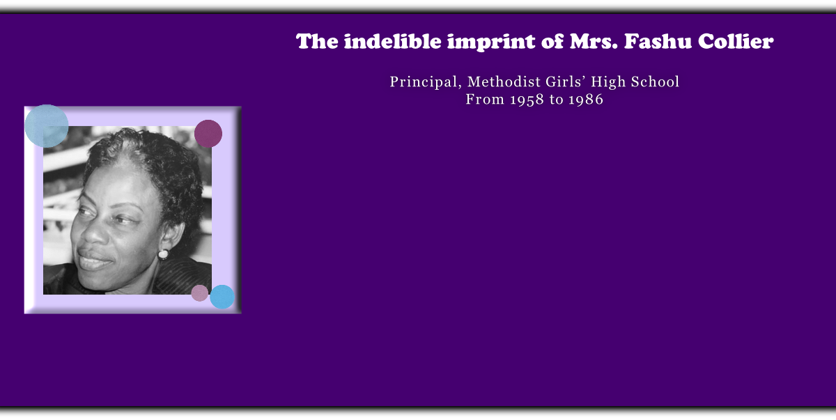 The Methodist Girls’ High School was blessed to have Mrs. Fashu Collier as the longest serving principal. She is the daughter of very devoted Methodist Christian parents; her late father, Dr. J.G. Cummings served the Freetown community as a medical doctor for many years.